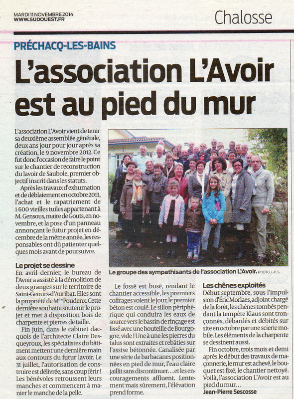 Sud Ouest du 11 novembre 2014: compte rendu de l’AG du 9 novembre 2014 by jean-pierre sescosse on 11 novembre 2014 in Articles de presse • 0 Comments