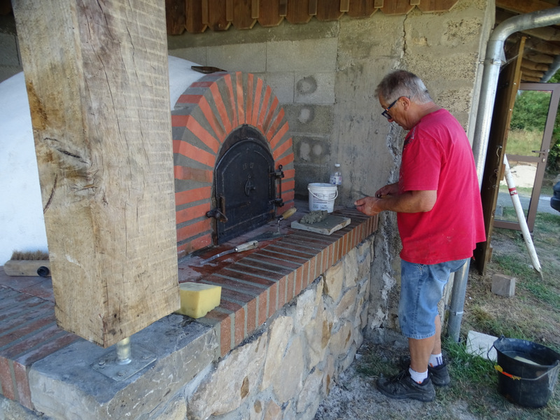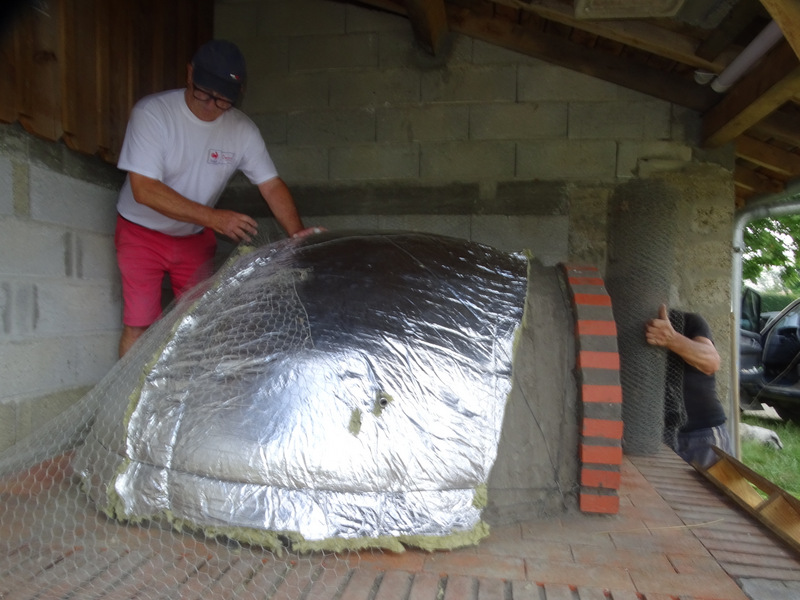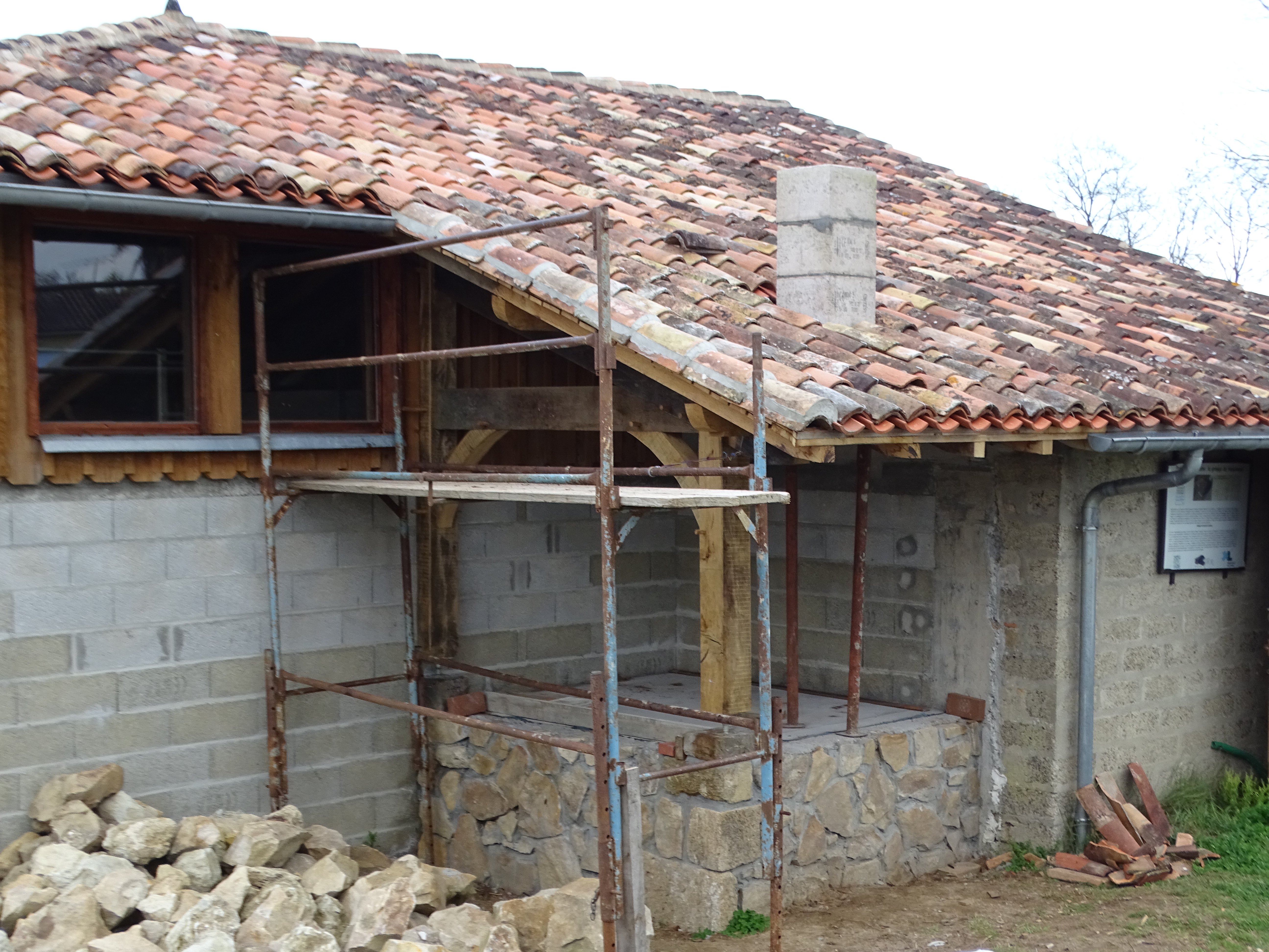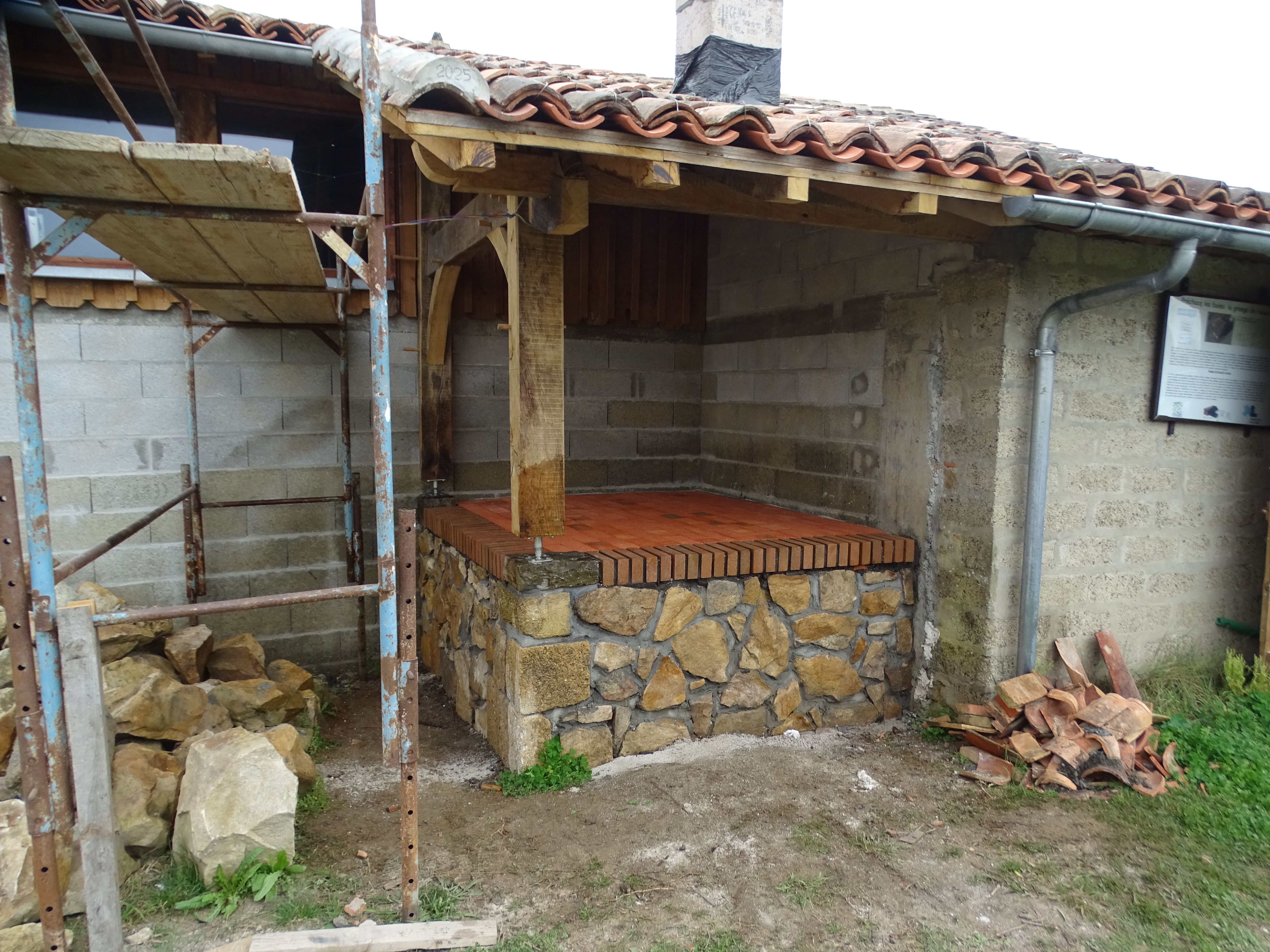 Mars Avril 2025: charpente au dessus du four et construction du four en briquettes réfractaires